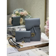 Dior Saddle Flap Card Holder Calfskin Cloud Blue
