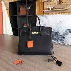 Hermes Birkin Togo and Swift Ghillies Anemone Bag Black