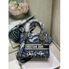 Dior Medium Lady D-Lite Bag Blue Dior Palms Embroidery