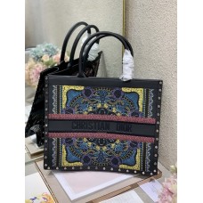 Dior Book Tote Black Perforated Calfskin In Lights Embroidery