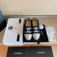 Chanel Spring And Summer New Double C Logo Fisherman Leather Shoes Silver
