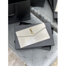 Saint Laurent Uptown Pouch In Crocodile Embossed Shiny Leather 565739 White